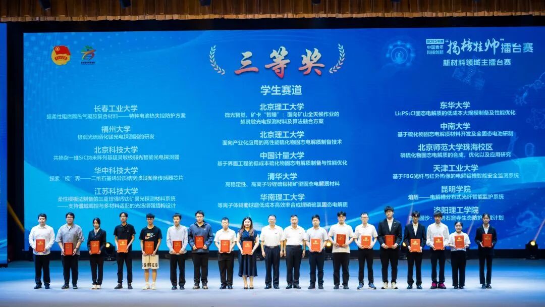 10月10日-12日,2025年度中国青年科技创新“揭榜挂帅”擂台赛新材料领域主擂台赛在龙岩成功举办。赛事以“青春为中国式现代化挺膺担当”为主题,由共青团中央、中国科协、教育部、中国社会科学院、全国学联联合主办,全国110支参赛团队400余名学生及青年科技人才汇聚龙岩参加比赛。经过激烈角逐,最终12支团队摘得“擂主”桂冠,充分展现新时代青年科技创新的蓬勃力量。共青团中央,共青团福建省委,龙岩市委、龙岩市人民政府,龙岩学院负责同志出席颁奖仪式。