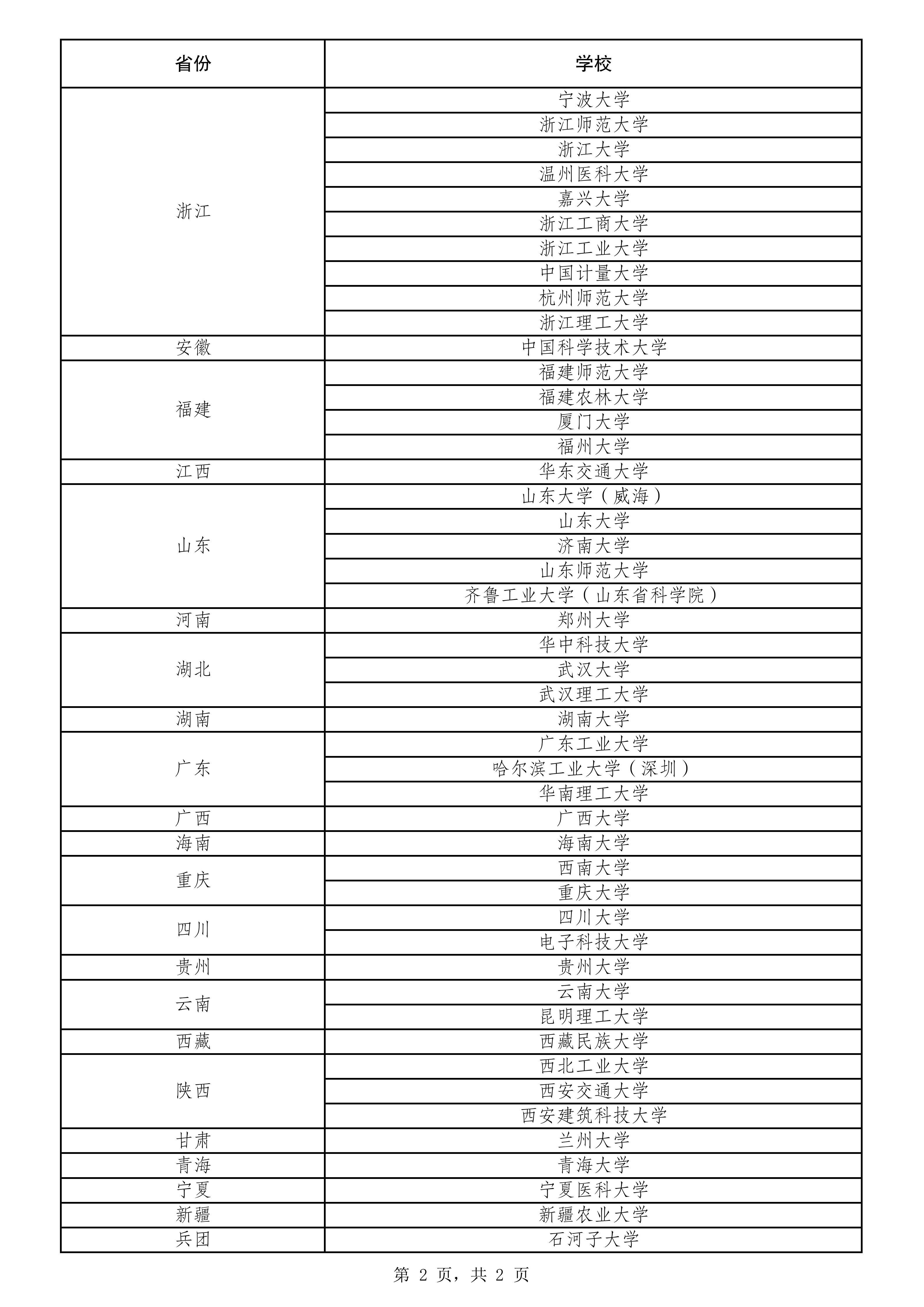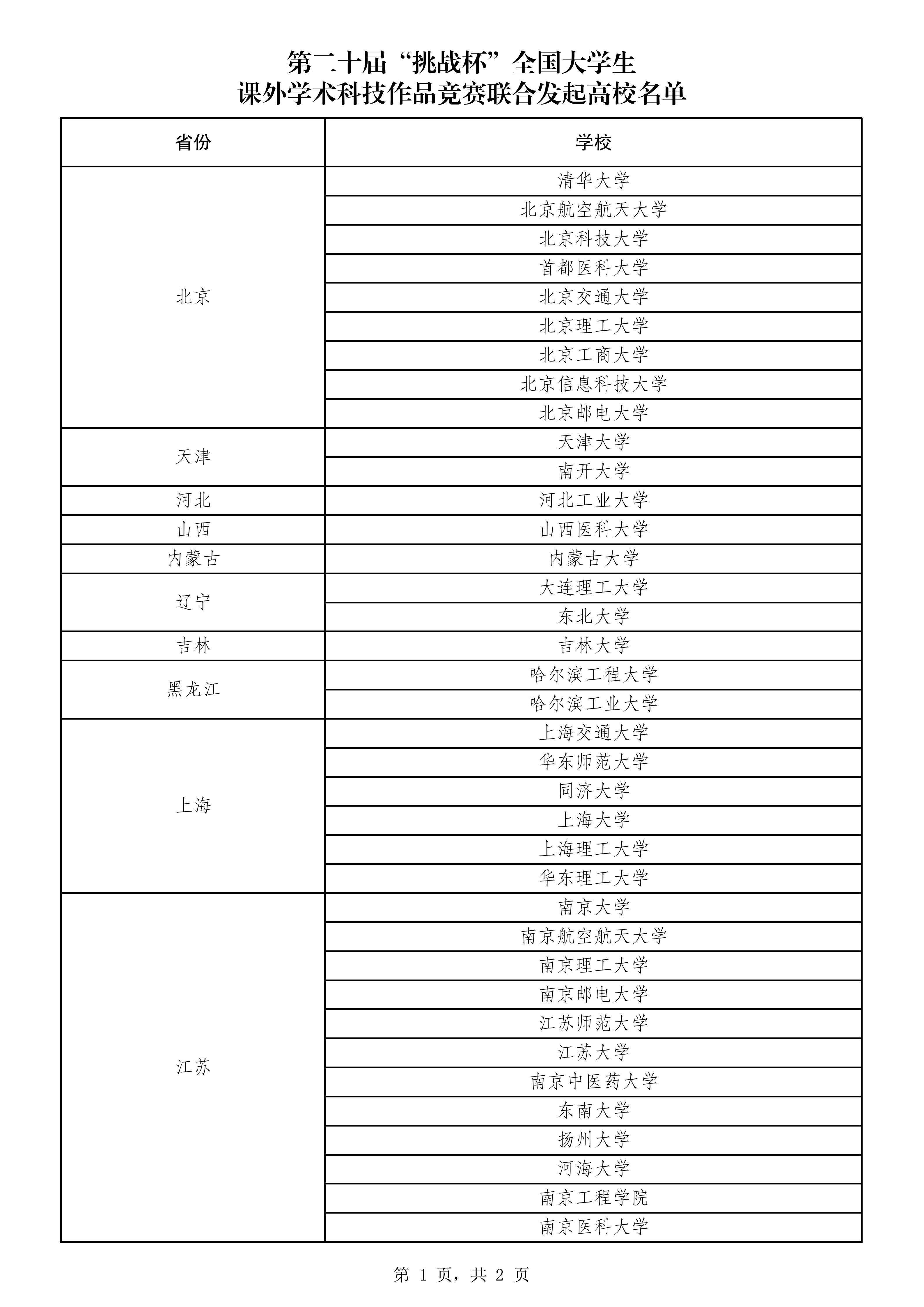 附件:第二十届“挑战杯”全国大学生课外学术科技作品竞赛联合发起高校名单